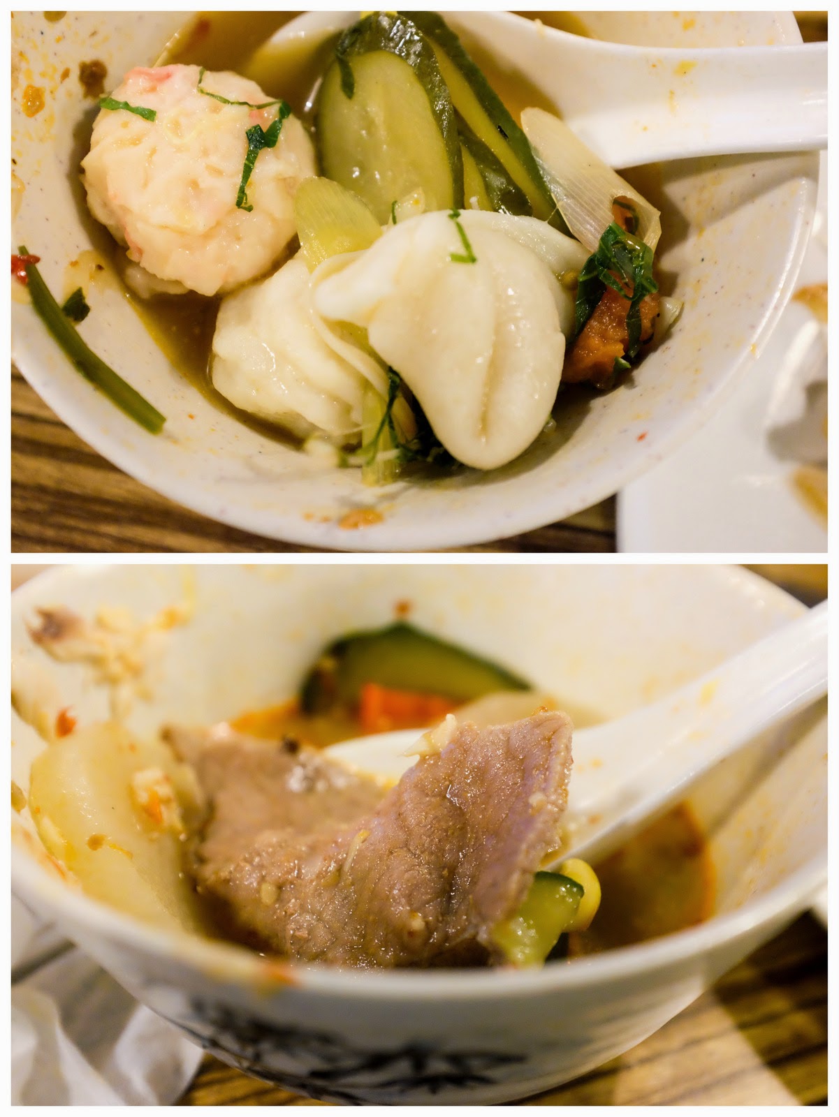 House-made pork balls (RM6.90 for four), pork belly slices (RM11.90), fresh beef slices (RM16.90), cuttlefish or prawn balls (RM6.80 for four), fish dumplings (RM4.80 for six), pork wontons (RM4.90 for six), bean curd skin (RM4.90), enoki, straw or abalone mushrooms (RM4.80), vermicelli noodles (RM2), siu pak choi (RM4.90) - a full, fulfilling feast can be savoured here.