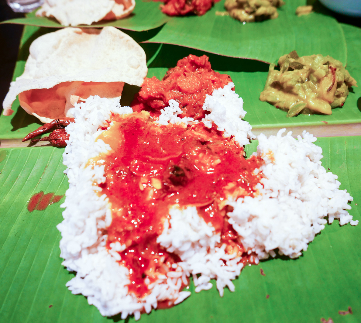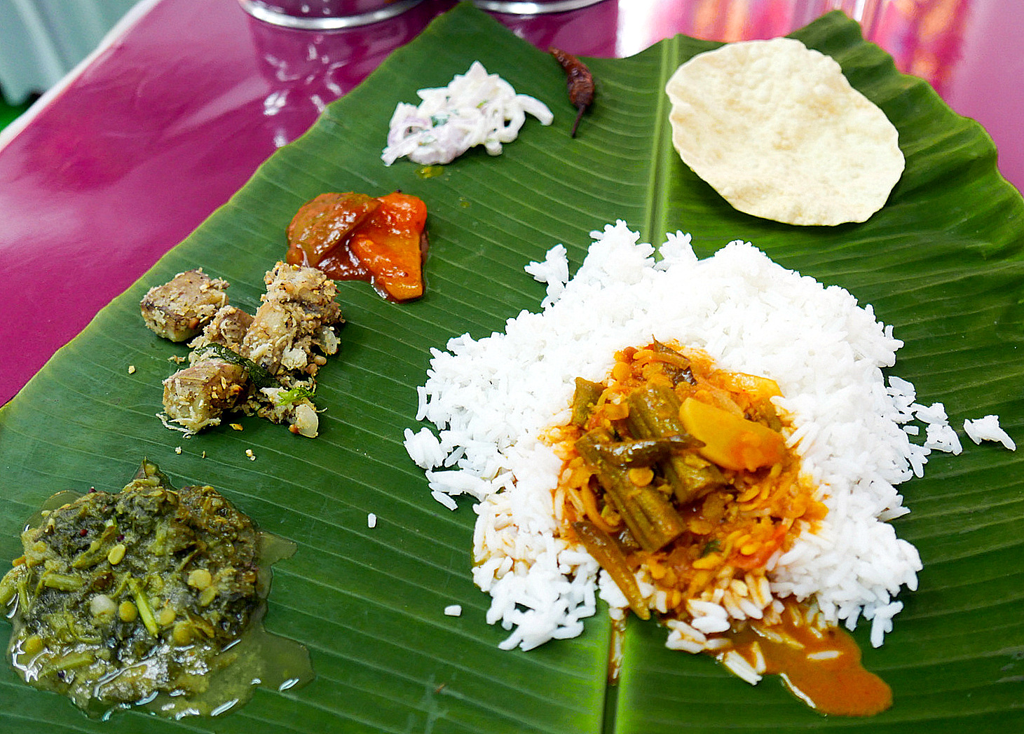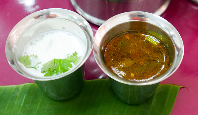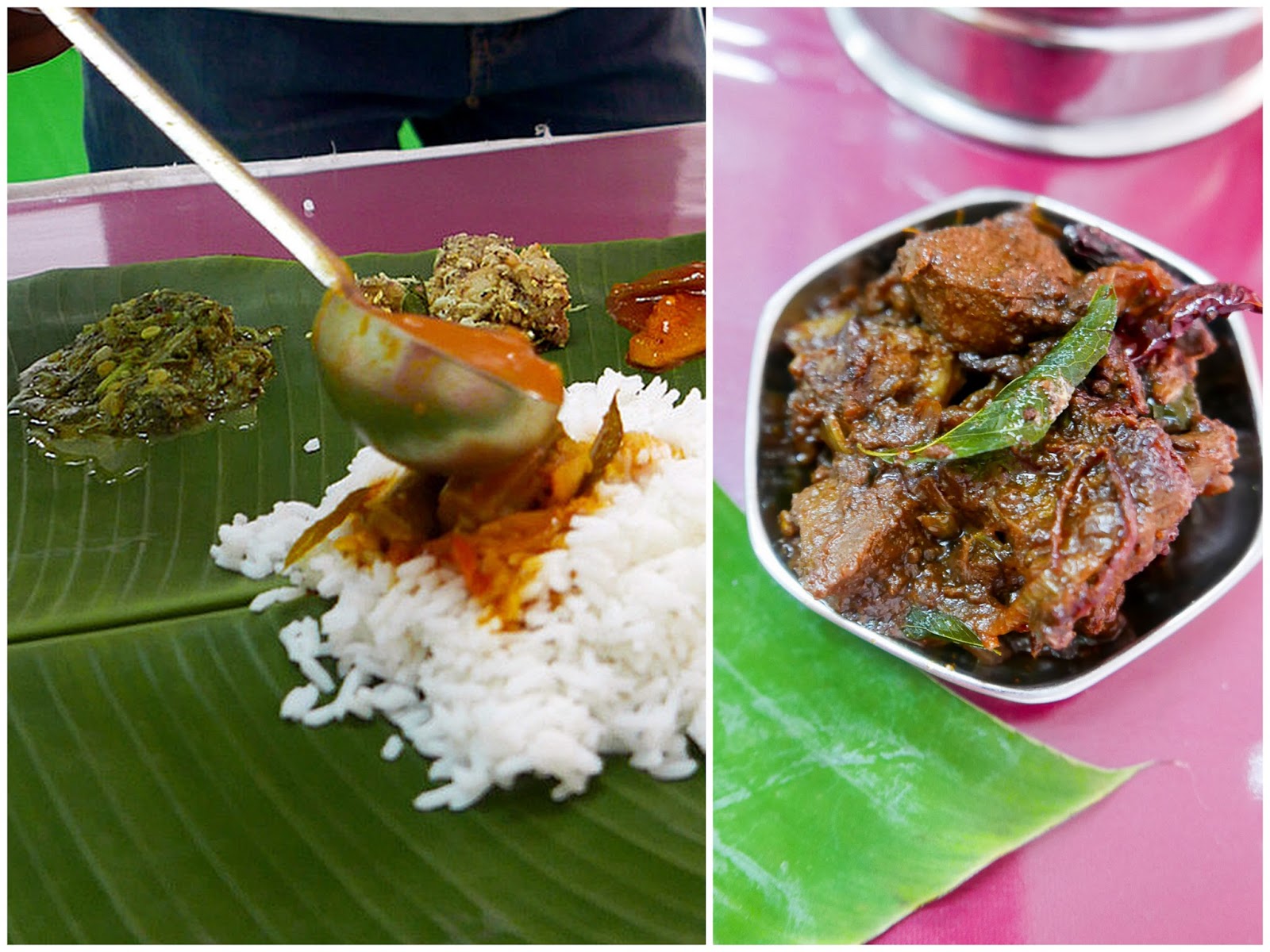 Add RM5-RM6 if you'd like to bolster your meal with meat - we recommend the very tender & tasty mutton peratal; others may want the Chicken 65. Rasam (beautiful) & moru (a curd-based refreshment with hints of shallots & ginger) are complimentary.