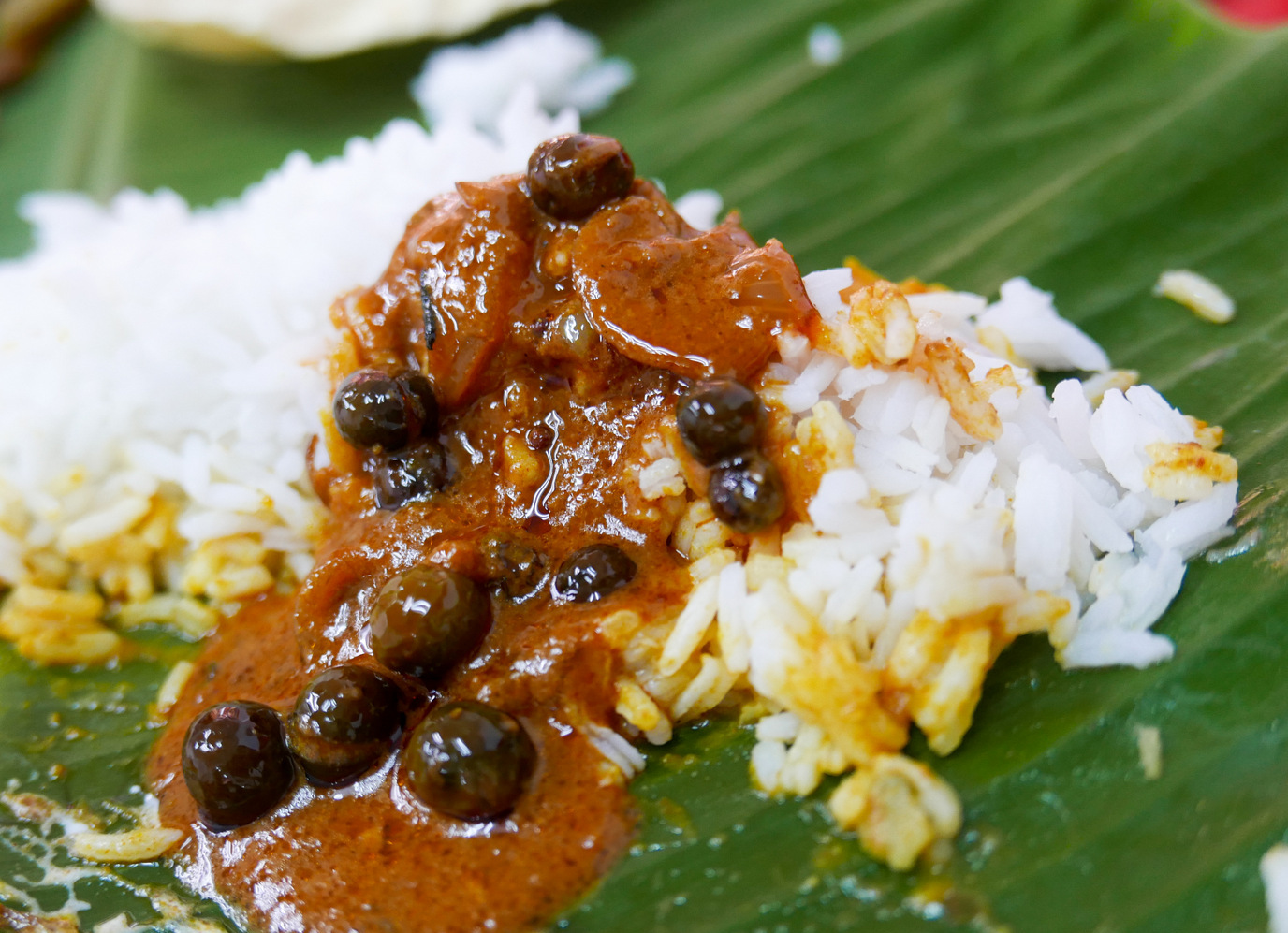 Good gravies too: The moringa dal packs a slightly more fiery wallop than expected, while the the chicken curry is simple & satisfying in its meat-&-potatoes purity. The surprise is the tamarind curry brimming with sundakkai vathal (sun-dried turkey berries), conveying a robust bitterness traditionally believed to possess medicinal properties.