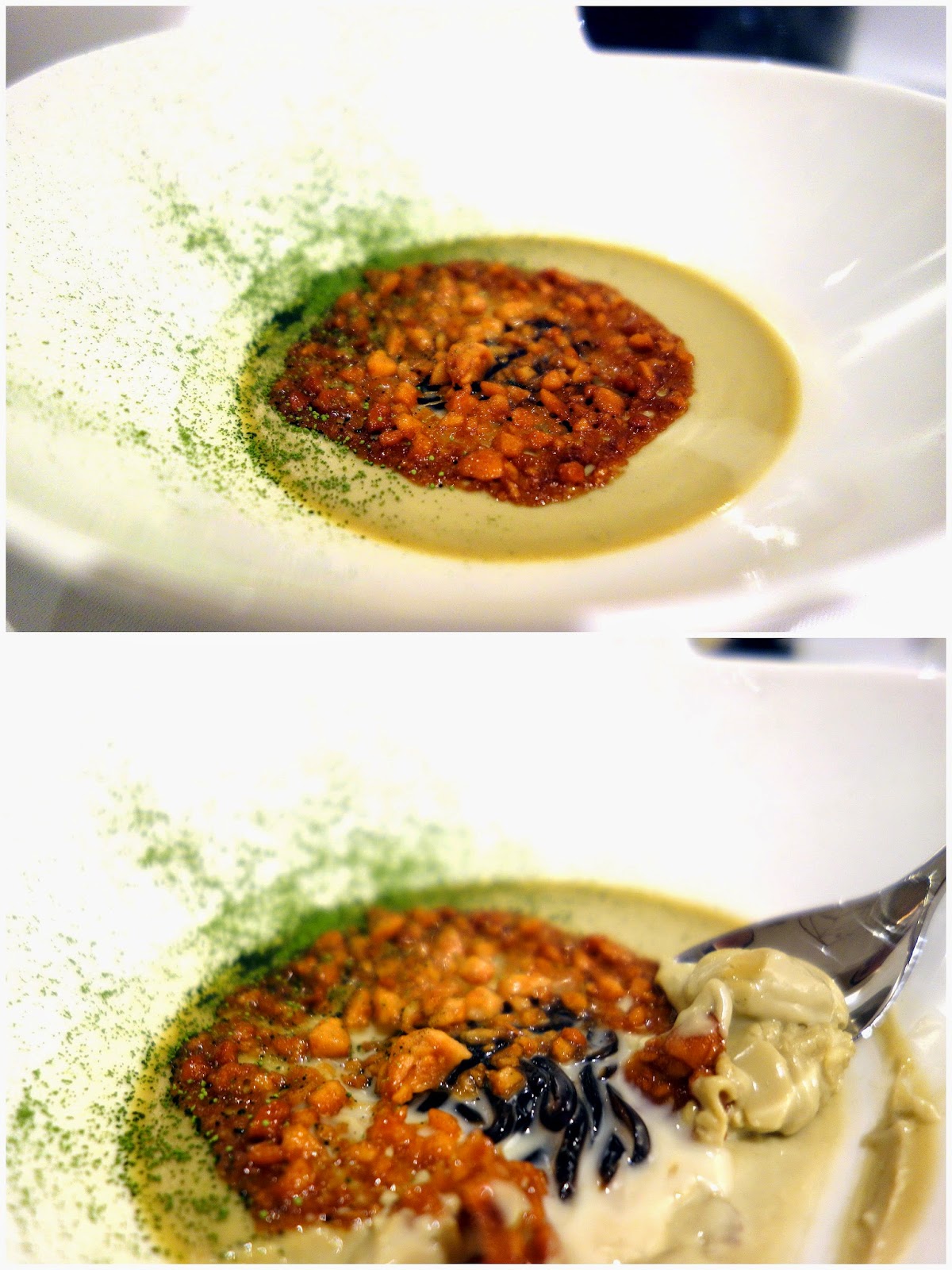 Good things come in threes, as proven by DC's trio of sweets to cap this meal - from a ravishing pistachio creme brulee with soy milk, black jelly, hazelnut tuille & green tea ...