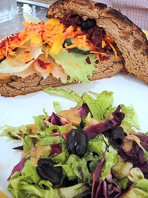 Sandwiches made to order are also an attraction. Rye bread stuffed with smoked chicken & mixed salad is heavy but healthy (we hope!).