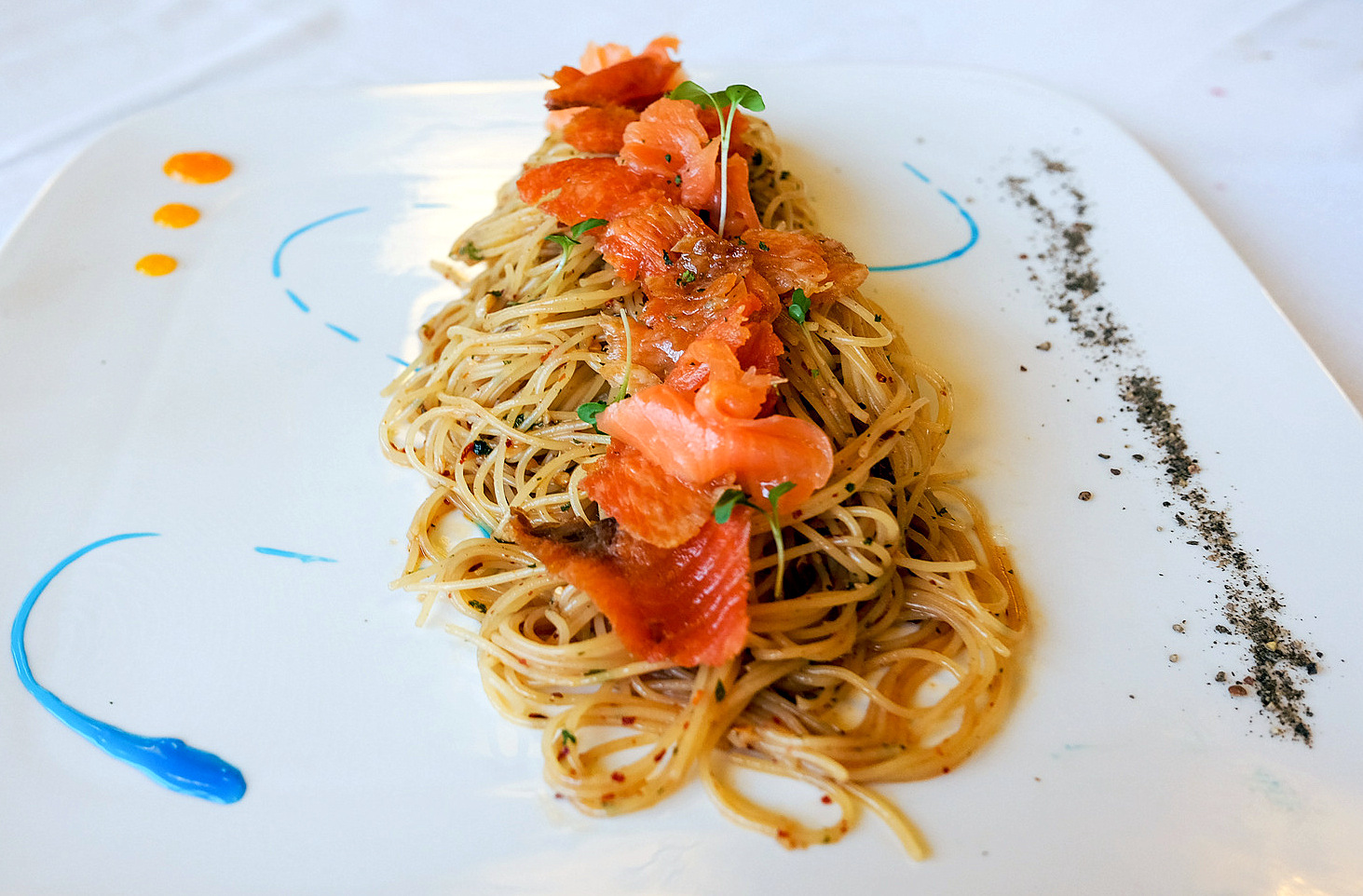 Meat matters too - recommendations include the clean-flavoured smoked duck breast with balsamic glaze (RM32), Black Angus tenderloin with parsley mash, grilled eggplant & blue cheese sauce (RM118) & a juicy medium-rare Wagyu patty with textured tomato jam (RM45). Elsewhere on the menu, thin & crisp pizzas should prove crowd-pleasing, with topping possibilities that range from chicken with avocado to beef salami with chillies, turkey ham with pineapples, & tuna with mushrooms. Balance it out with a salad - Angie's favourite is the mesclun with kitchen-made raspberry vinaigrette (RM18) - & some bruschetta, crowned with choices like piquillo peppers, chicken & mango, or cream cheese with pear & walnuts.