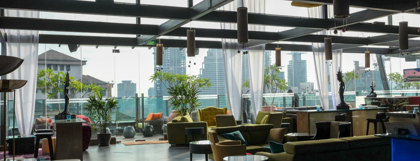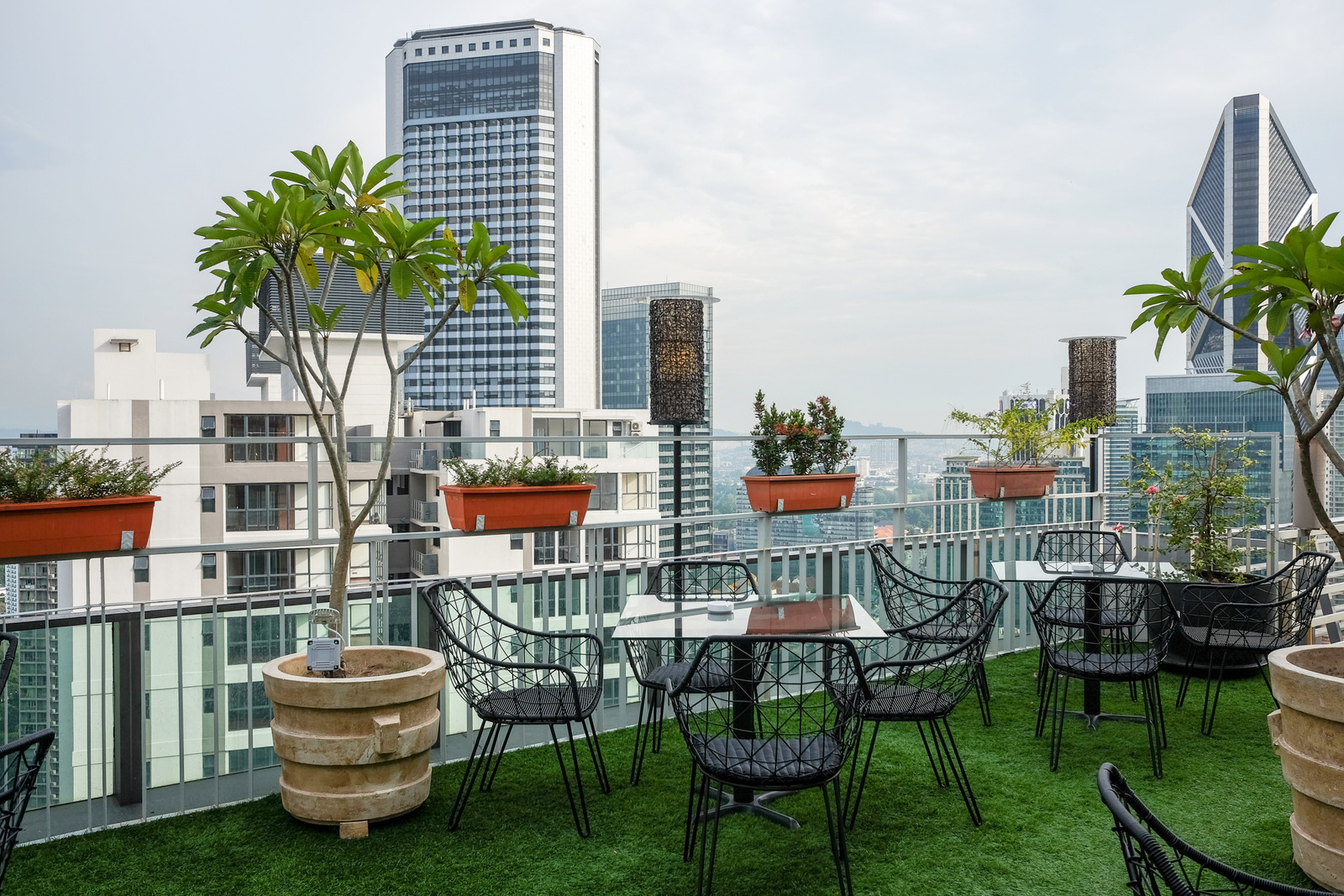 If your sights are set on the Petronas Twin Towers & Kuala Lumpur Tower, head to Roofino's Truth bar section for a wide-open spectacle of the city's most recognisable lofty landmarks. If you prefer a little more peace & privacy, a wood-panelled lounge overhanging the restaurant beckons. It's worth commencing your visit here an hour or so before sunset, taking in the changing scene from colourful, comfortable couches as the day's final rays give way to a gentle starlit glow.