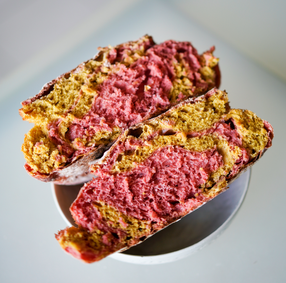 KL's kaleidoscope of bread gets more colourful with Roti Pelangi, bringing a sourdough summer to the city's winter of discontent. Home baker Emma crafts loaves that are beautiful inside and out, strikingly stencilled and scored, naturally hued with fruit, flower and vegetable-based dyes.