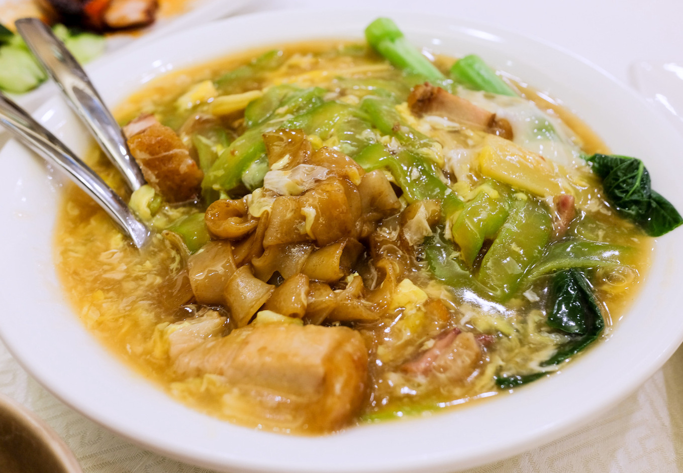 ... to interesting carb-loading dishes like kuey teow with pork belly & bitter gourd (RM22) & fried rice with octopus & seafood in abalone sauce (RM18), with other temptations like glutinous rice with Chinese sausages, sang meen with freshwater prawns in superior sauce, & bee hoon with seafood in fish sauce also catching our eye.