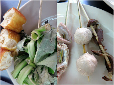 Quail eggs, pandan chicken and century eggs. Dunk into the steaming sauce, wait a minute, and voila, everything's ready and remarkably flavorful to eat.