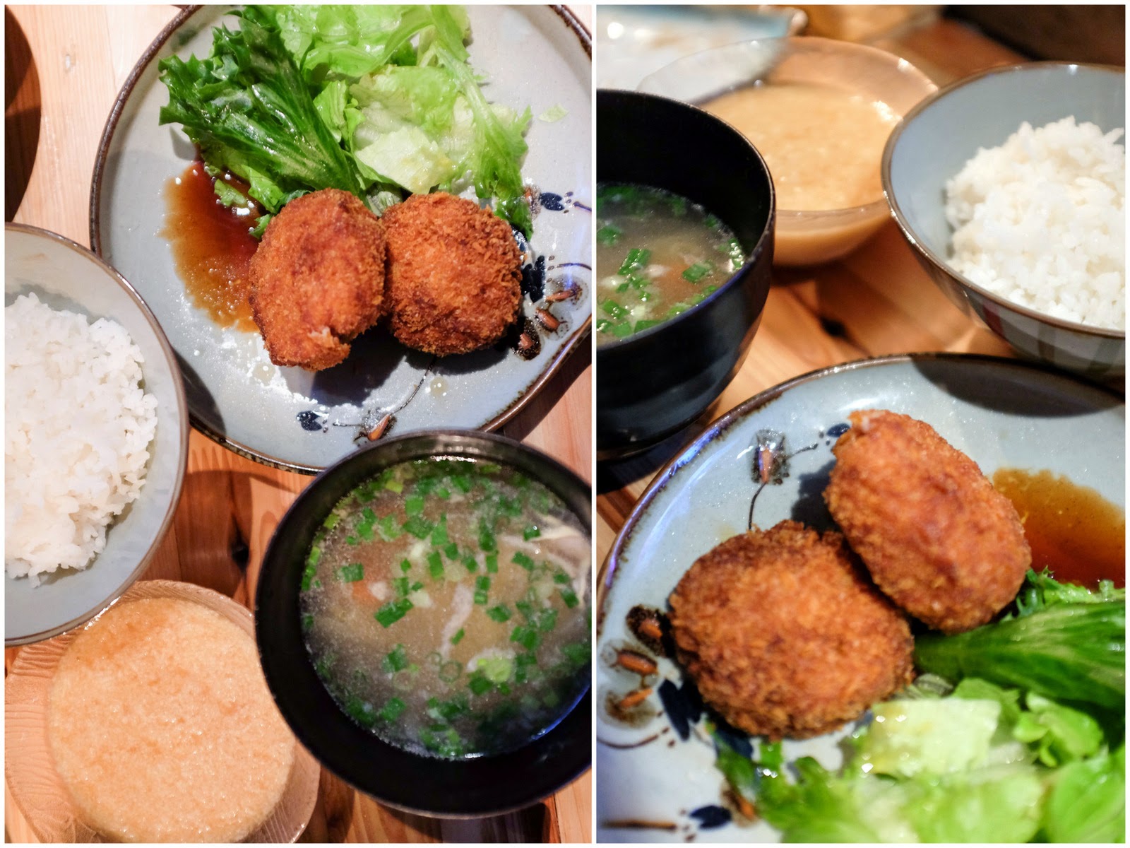 Honest cooking flows out of the kitchen: Rustic meal sets (RM24) comprise rice meant to be poured over with warm grated mountain yam, 'menchi-katsu' crispy-crumbed minced pork cutlets & a mild-flavoured, nourishing pork-&-veggie miso soup.