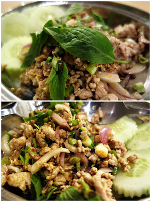 Frills-free porky fare supplies the fanfare: Start with a salad of laab moo (RM8), the northeastern Isan minced pork recipe that sets off spicy-sour-savory fireworks.