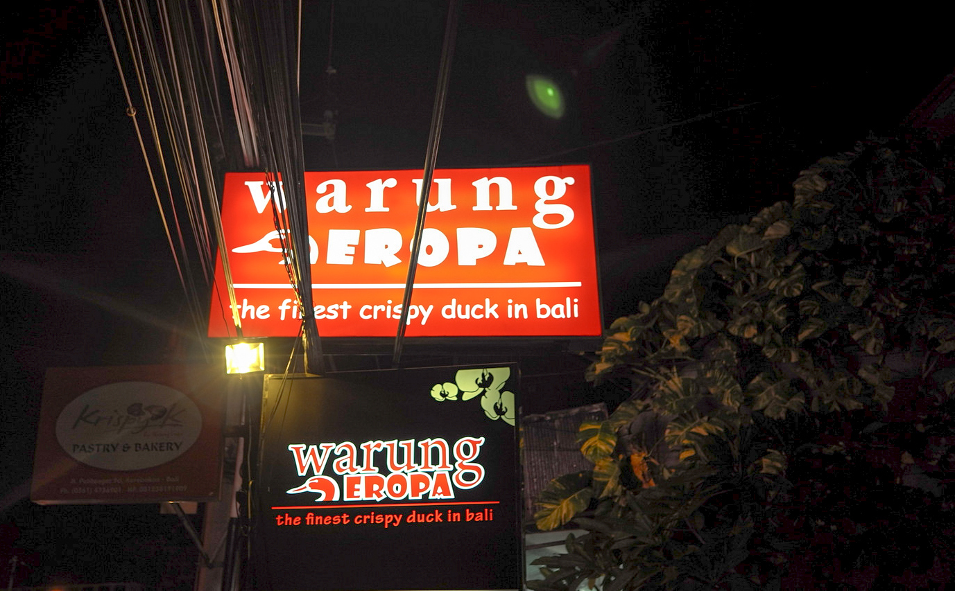 Warung Eropa offers up the audacious claim of serving "the finest crispy duck in Bali" - debatable, but the kitchen undertakes a fair run at making good on its boast, with substantially fleshy fowl that's crunchy to the bite, succulent and savoury to the chew, rounded out with fiery condiments that pack a punch in conveying the island's dynamically rich, bold flavours.