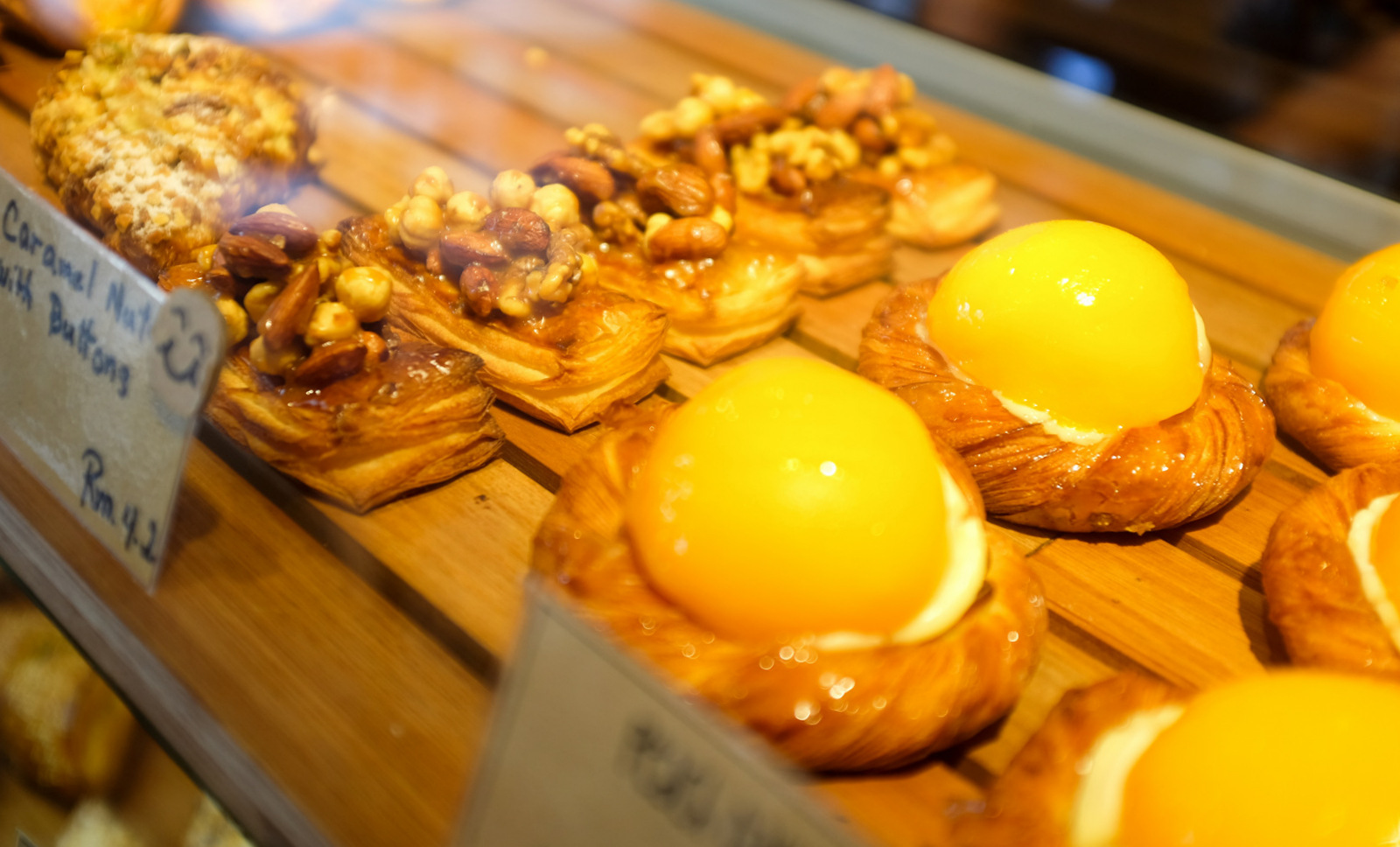 Our favourite temptations here might be Seeds & Wheats' own-made croissants - we prefer the unique banana croissant (RM6.80), enhanced with a soft, sweet slice of ripe fruit, over the lemon citron croissant. Traditional egg tarts (RM4.80) are available, but for folks who like creamy desserts, the best bets may be the mango eclair & 'triplet' custard choux puffs.