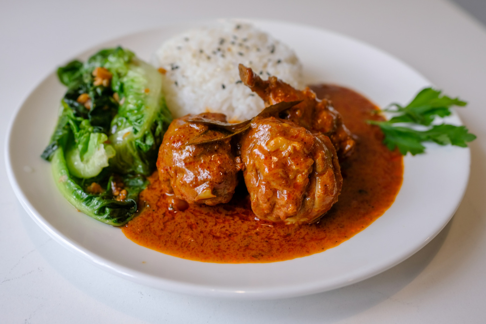 The food here is fuss-free but fulfilling - mainly rice platters rounded out with minced pork and potatoes (RM9.50), chicken curry (RM9.50), or other classic savoury recipes familiar to several generations. Set meals are available (starting at RM12,90), complete with house-made herbal tea and puddings.