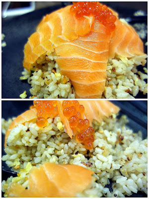 Another fun combo: Garlic fried rice, topped with salmon sashimi & roe. The rice could probably use more flavor, but the fishy components of this are fine.