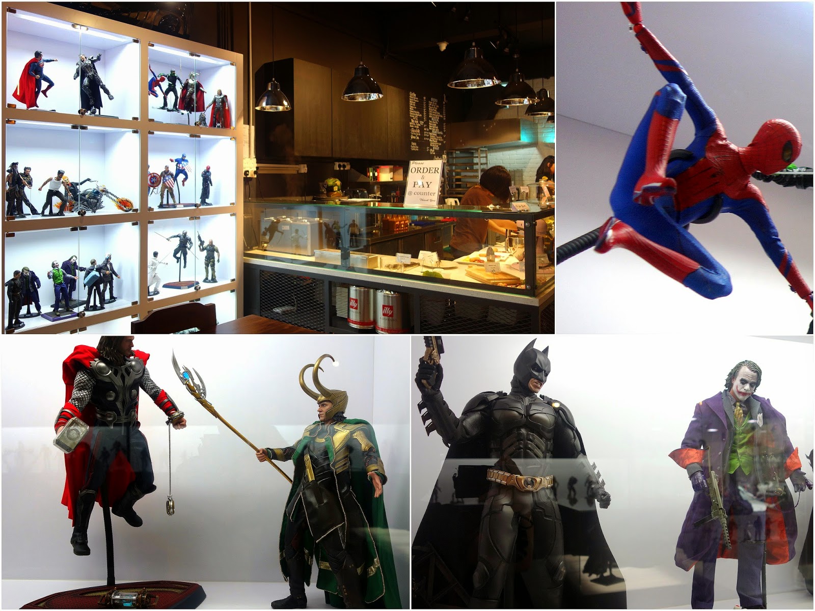 The name 'Showcase' is an understatement as far as this cafe is concerned; Hot Toys action figures made in Hong Kong dominate the decor, which features face-offs galore between the God of Thunder & the God of Mischief, Batman & the Joker, plus other caped crusaders from the personal collection of Showcase co-owners Nicholas & Freddie.