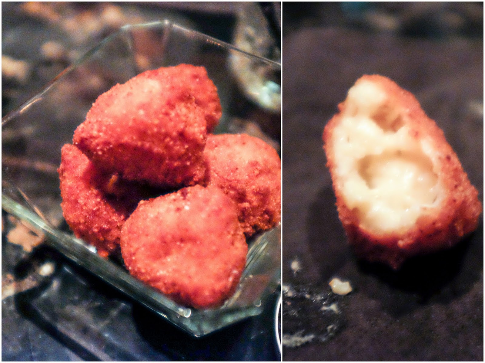 We tried three cocktails: Black Waters (RM45) is swoon-worthy - blanco tequila, seaweed agave, squid ink, lime juice & celery bitters, exquisitely refined in its complex but restrained purity of flavours. Don't Do Shrooms (RM55) aromatically showcases truffle-infused vodka, cardamom milk jam, heavy cream & black hazelnut bitters, while Pear Pressure (RM60; love these cool names) is an indulgent medley of Skullduggery's own-buttered calvados, crumble syrup, spiced pear liquor, lemon juice & plum bitters with an aftertaste that lingers pleasurably. Skullduggery's team (including bartender Kavi, whom customers of Huckleberry After Dark downstairs might recognise) does an admirable job of crafting these smooth, beautifully balanced potions, made with the bar's own inventive & painstaking infusions & developed in consultation with in-house French mixologist Viji Thomas. The bar also offers a unique selection of relatively rare spirits & offerings from small-batch distillers.