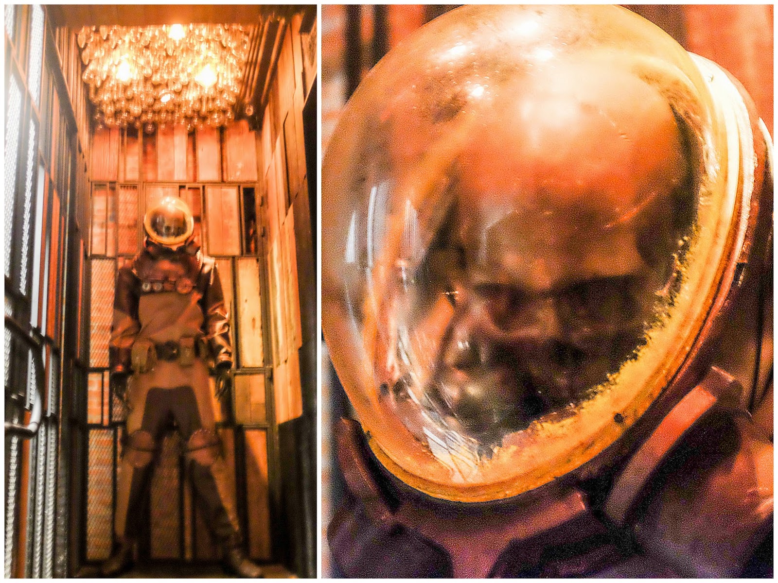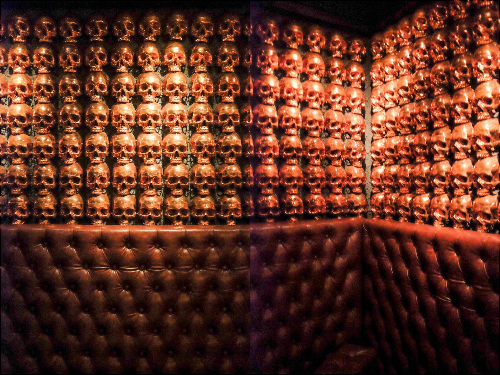 Here's how to find Skullduggery: Walk to the back-lane behind Plaza Damansara's Huckleberry Food & Fare (both Skullduggery & Huckleberry share the same founders); look for the ornate, earthen-toned entrance; then take the stairs up, confronting the ominously creepy vibe that leads to a costumed figure that conceals a skull in its helmet, resembling a cross between a Jules Verne creation & a horror flick prop. By then, the elegant bar will be on your right.