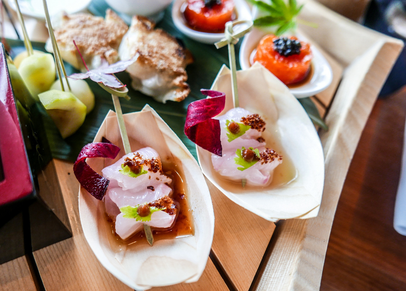 The Sky High Tea runs every Saturday & Sunday from 23 July onward: Executive chef Philip Leong & his team have transformed the traditional high tea into an elegantly distinctive feast that remains true to Nobu's Japanese-Peruvian gastronomic identity. Begin with the Savoury Tray, which compiles six types of canapes that taste as vibrant as they appear.