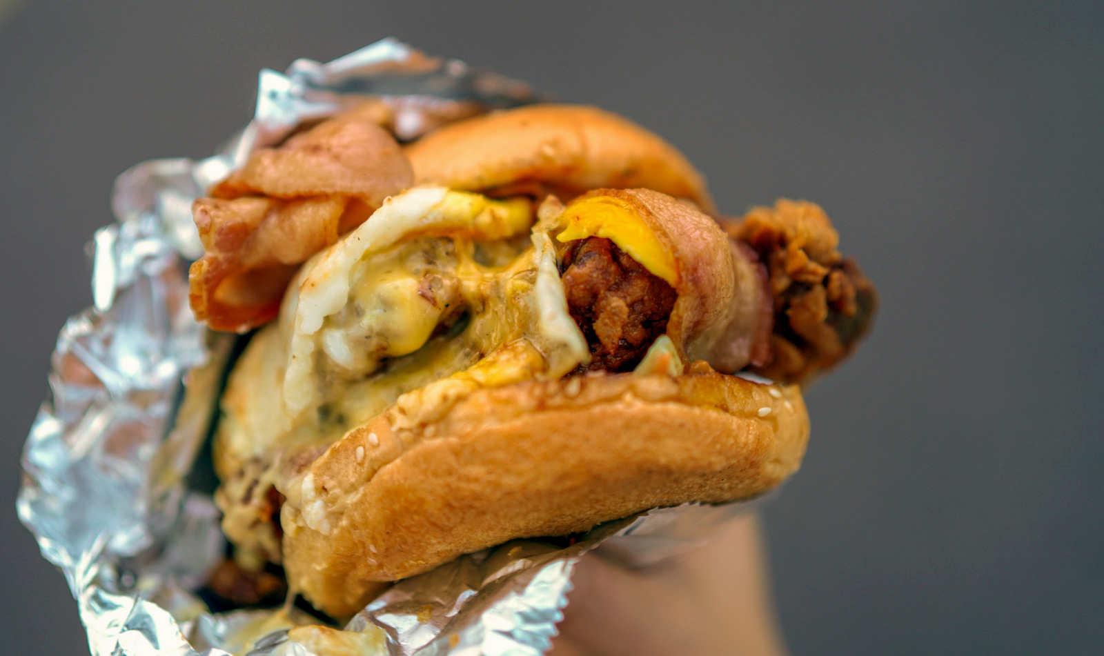 The result: Pure pork-and-poultry pleasure, more succulence than we can sink our teeth into. With everything going on in this burger, it proved more well-balanced than we might expect. Honest-quality, well-prepared ingredients from top to bottom, from the buns to the meat - let's give 'em something to oink about.