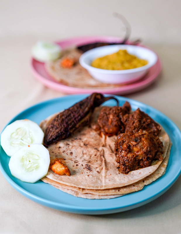 The non-vegetarian dish of the day swapped out dal for ghee chicken roast, generous with milky-sweet meat, rich with a chilli-fuelled tang.