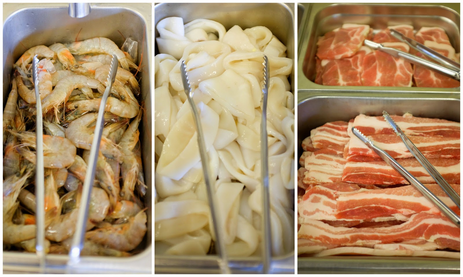 The main lure: Help yourself to the BBQ fare, ready to be cooked, with plenty of meaty pork slices, beef, chicken & seafood.