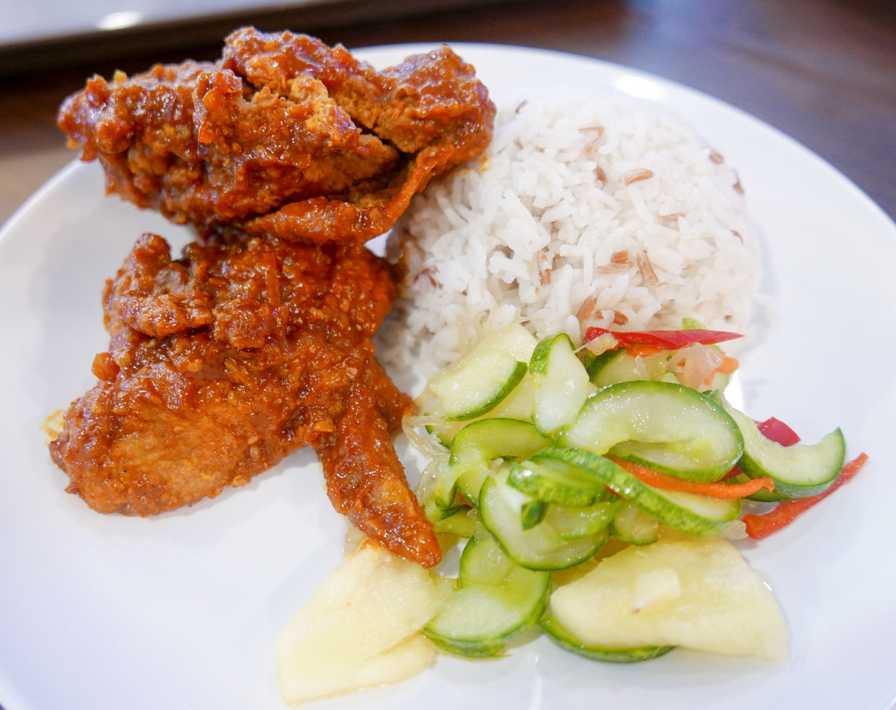 Begin with the broasted chicken, prepared through a combination of pressure cooking & deep-frying - it looks & tastes like fried chicken, notably less greasy than the fast-food norm, but still totally tender & tasty. RM4 per piece, RM11.50 for three pieces, RM19.50 for five pieces, or RM12 for a platter of two pieces with SugarBun's savoury rice (laced with raisins & morsels of chicken sausage) & house-made pickles. You can also have the chicken in a 'kano' sauce - flavoured with lemongrass, garlic, onions & spices - that partners pretty much perfectly with the meat (RM15 for a two-piece kano chicken platter with rice).