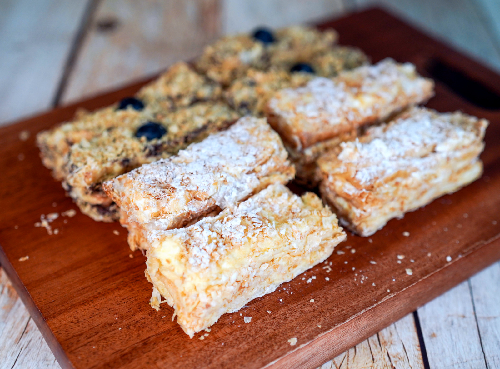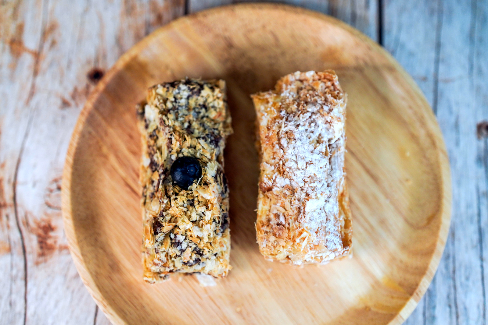 The Napoleon Cakes are irresistible - fresh, thin layers of puff pastry, beautifully flaky to the bite, soaked and smothered with whipped cream frosting for mouthwatering layers of crispness and moistness. If you're storing them, these taste even more indulgent a day later, when the pastry soaks up the cream. Available in Original (RM35 for eight pieces), Chocolate (RM40 for eight), or both (RM38 for eight).