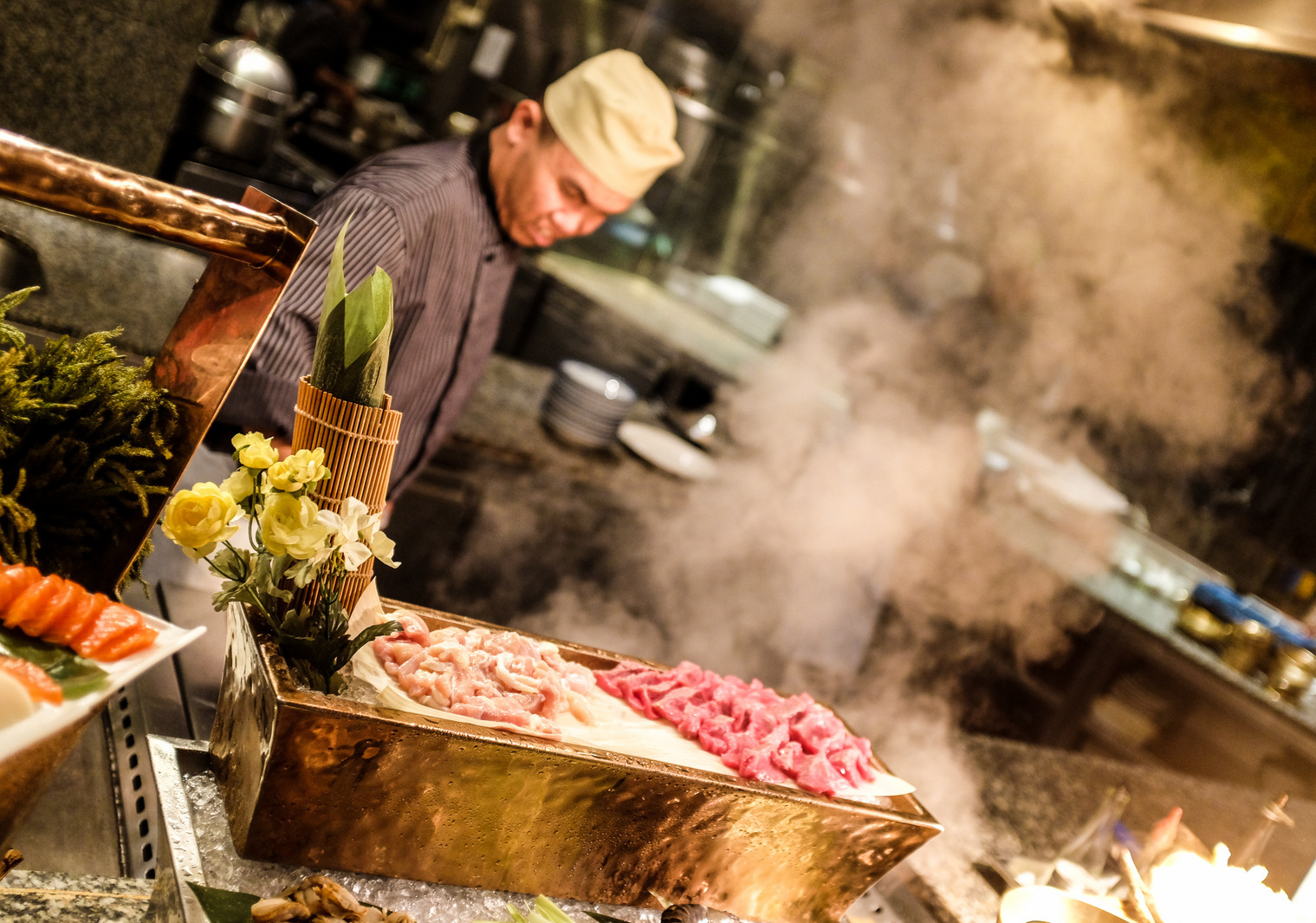 Typically, Shook! hosts a Mad Hatter-themed lunch each Sunday; we were here for Father's Day, with the entire buffet remaining intact. Shook! continues to advocate four primary show kitchens that bustle with action & energy - Chinese, Japanese, Italian & a Western grill - with a smorgasbord of temptations across the counters: fresh seafood to cold cuts & multiple types of house-cured salmon, red meat & poultry galore, soups, salads & stews, rice & noodles, creamy cheeses & luscious, colourful desserts. The midday meal lasts for four hours, so take your time to savour everything your heart desires.