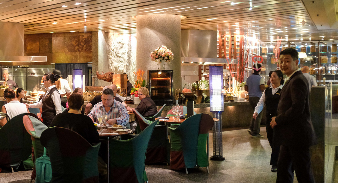 Besides the buffet, customers at the Sunday lunch can also order an a la carte sampling of plated specialities that include some of Shook!'s familiar signatures - pan-seared scallops with green pea puree, cod fish with potato & curry veloute, beef cheeks with mashed potatoes, tortellini with wild mushrooms, steamed sea bass with bean sauce, stir-fried 'dancing prawns' with hot mayo & honey-glazed walnuts, fried rice with chicken, grilled tenderloin with polenta & peppercorn sauce, & more.