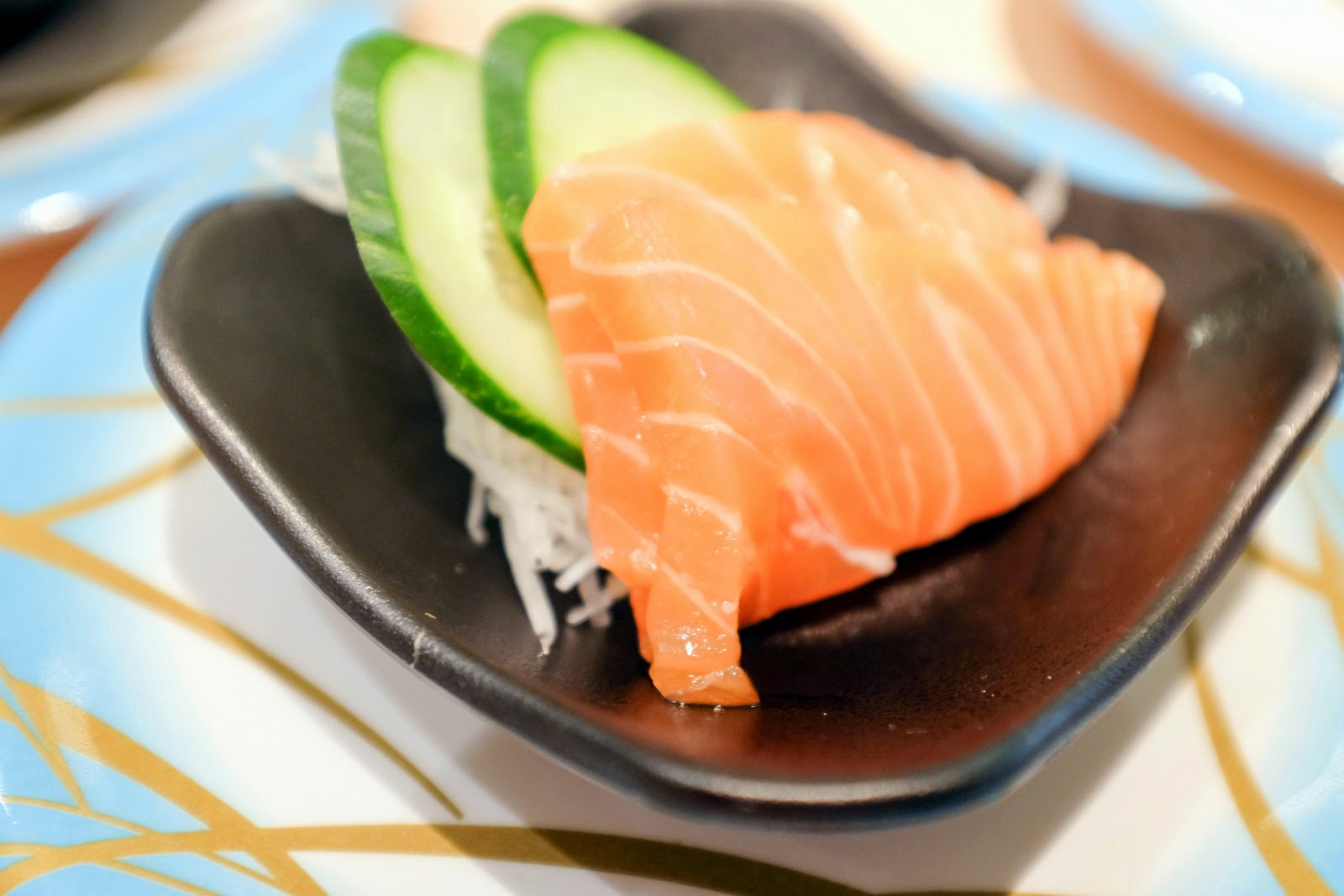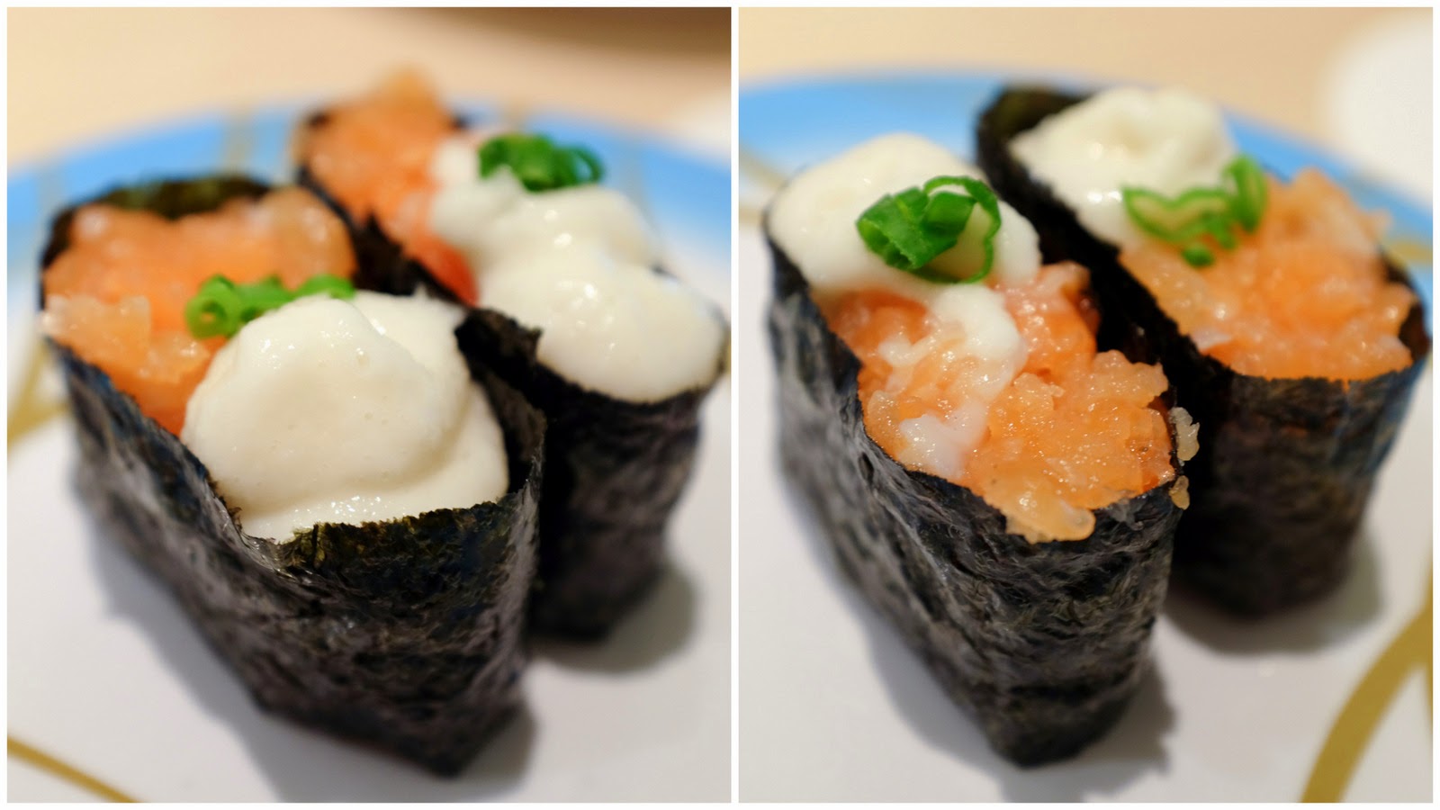 Lots for salmon lovers: Spicy salmon & seared belly sushi, plus sashimi slices, equivalent in quality to a buffet selection's.