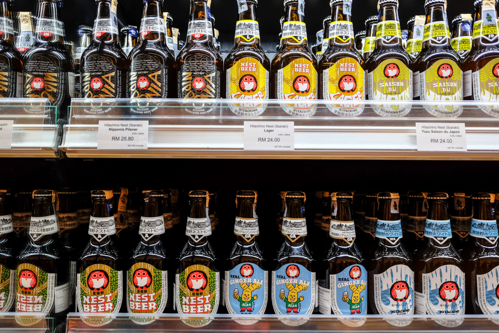 Takumi seeks to spirit us away with a distinctive diversity of Japanese wine, beer & whisky, available for retail purchases or to imbibe at this gleaming bar on Isetan The Japan Store's food market level. Stop by to sip on enjoyably easy-drinking glasses of vintages from Yamanashi's Chateau Katsunuma, Tottori's Hojyo Winery & Kyoto's Tamba Wine (RM30-RM43). For a refreshing experience, the Hokkaido Melon Wine (RM28) conveys a mellow fruitiness that may transport your senses to a lush, cool-climate orchard. Craft beers are offered on draught at the bar, including through a tasting flight of three kinds for RM50.