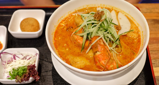 Our favourite order, the one we relished unequivocally, was from our hometown - Nancy's Kitchen Nyonya Laksa (RM19.90++), a hearty Malaccan bowl of noodles, crisp cucumber strips, large prawns, fish cakes & tofu pok in robust coconut milk broth, aromatic with laksa leaves & spices. Good enough to make us consider returning for nasi lemak, pasembur & more.