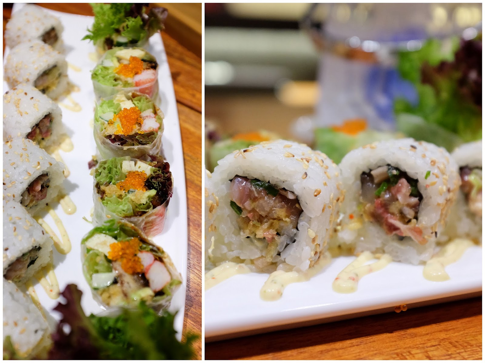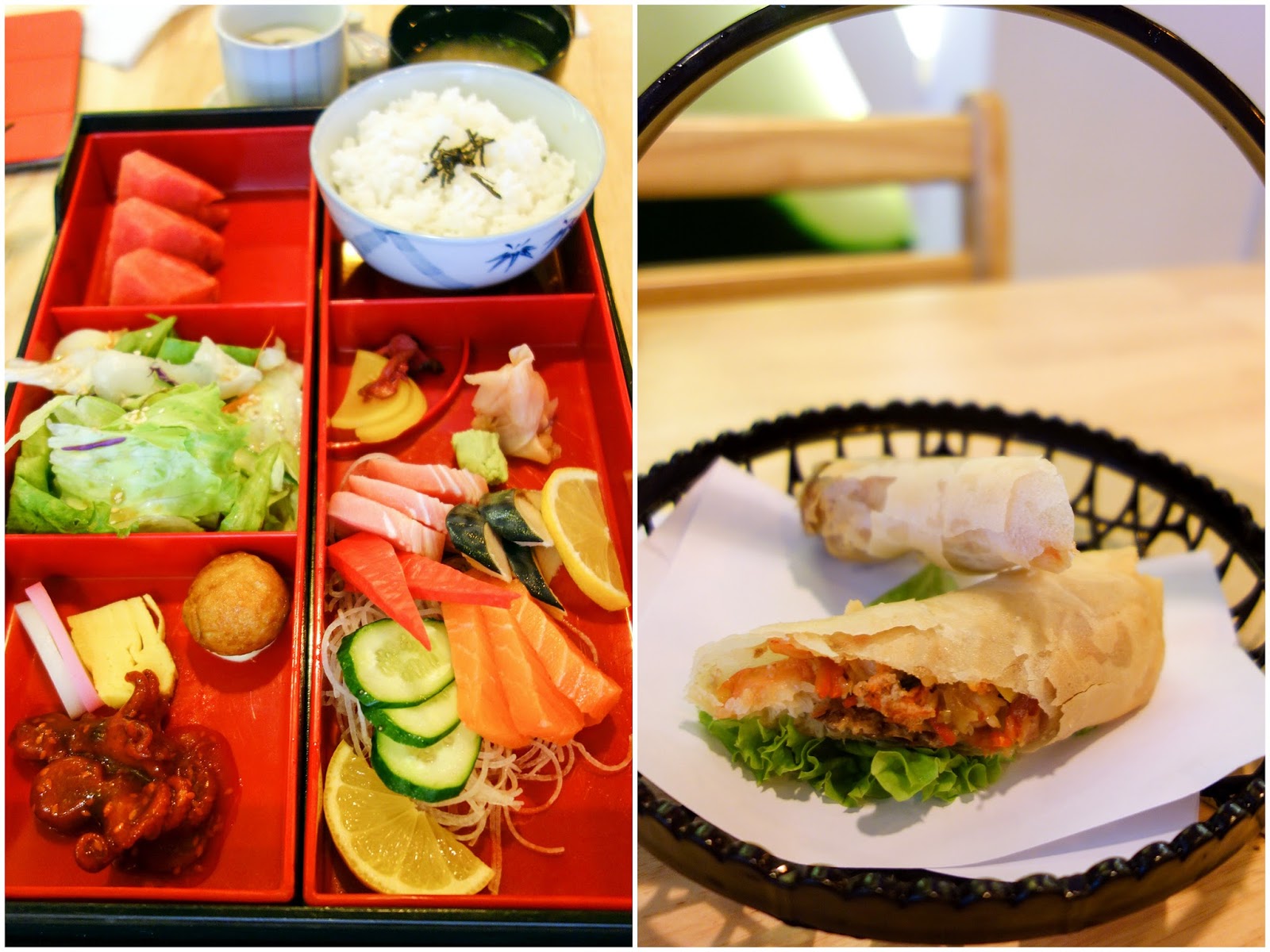 A meal at Moriawase may comprise a sashimi bento, soft-shell crab spring roll, cherry tomatoes stuffed with crab meat, tuna-packed rice paper rolls, & lemongrass-grilled salmon - it's a struggle however to summon up compliments for these creations.