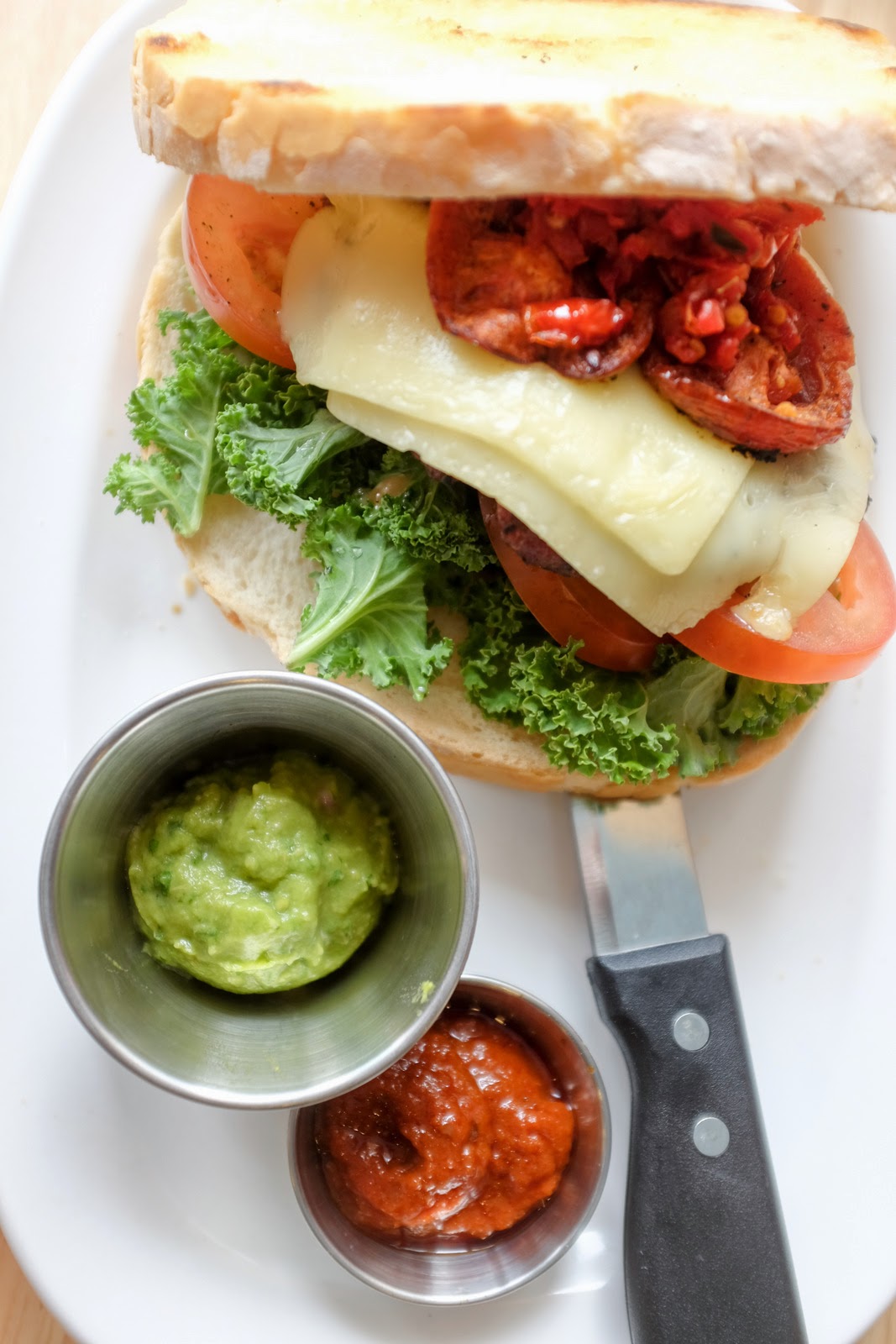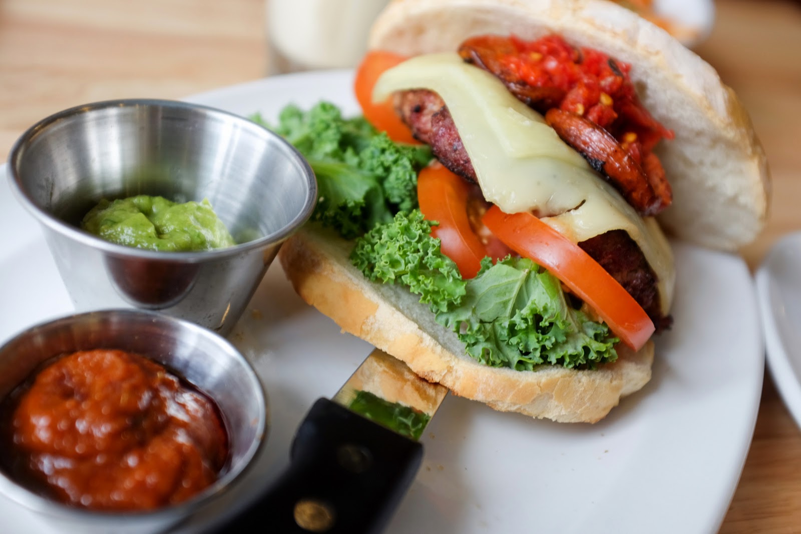 Our turkey burger was a pleasure to photograph, with the morning sun streaming through The Counter's windows overlooking Raja Chulan. Vibrant colours burst forth from this hearty ensemble with horseradish cheddar cheese, kale, ripened red tomatoes, sun-dried tomatoes & oven-dried tomatoes, paired with two separate sauces, Tex-Mex guacamole & Thai peanut. Not quite the perfect burger yet - not all the ingredients taste irrefutably good - but still worth sampling for burger enthusiasts.
