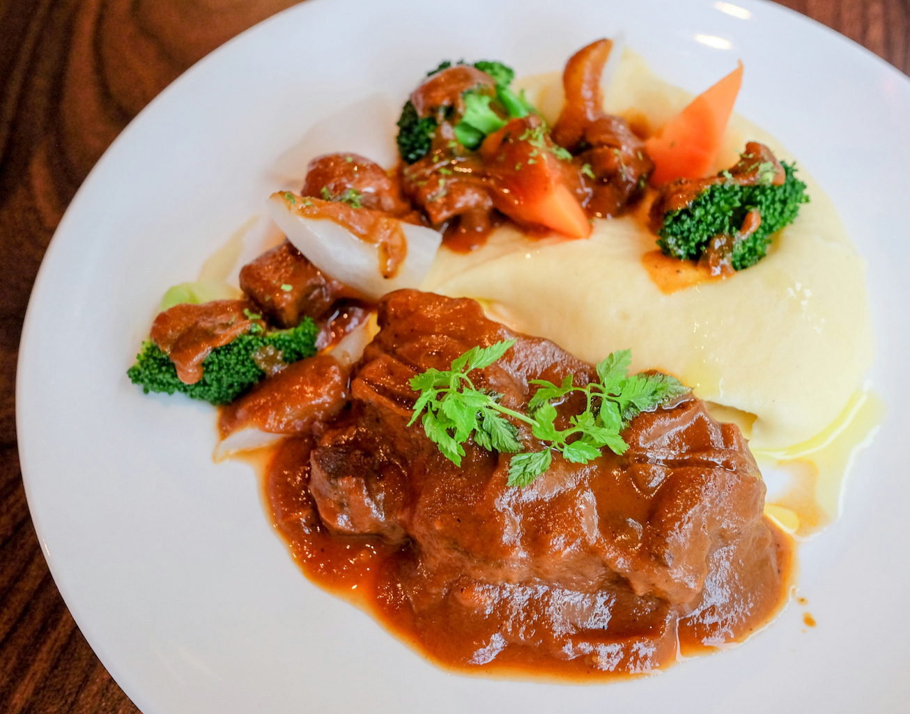 We'd come back for the comfort-food mains: Creamy minced pork spaghetti with a soft-boiled egg & greens (RM19), pan-seared sea bass with mushrooms in a subtle char siew sauce & mashed potatoes (RM29), pork collar & tongue, braised in red wine for four hours to a satisfying tenderness (RM30), & wasabi-&-miso-laced pork skewers on a bed of buttered rice (RM23).