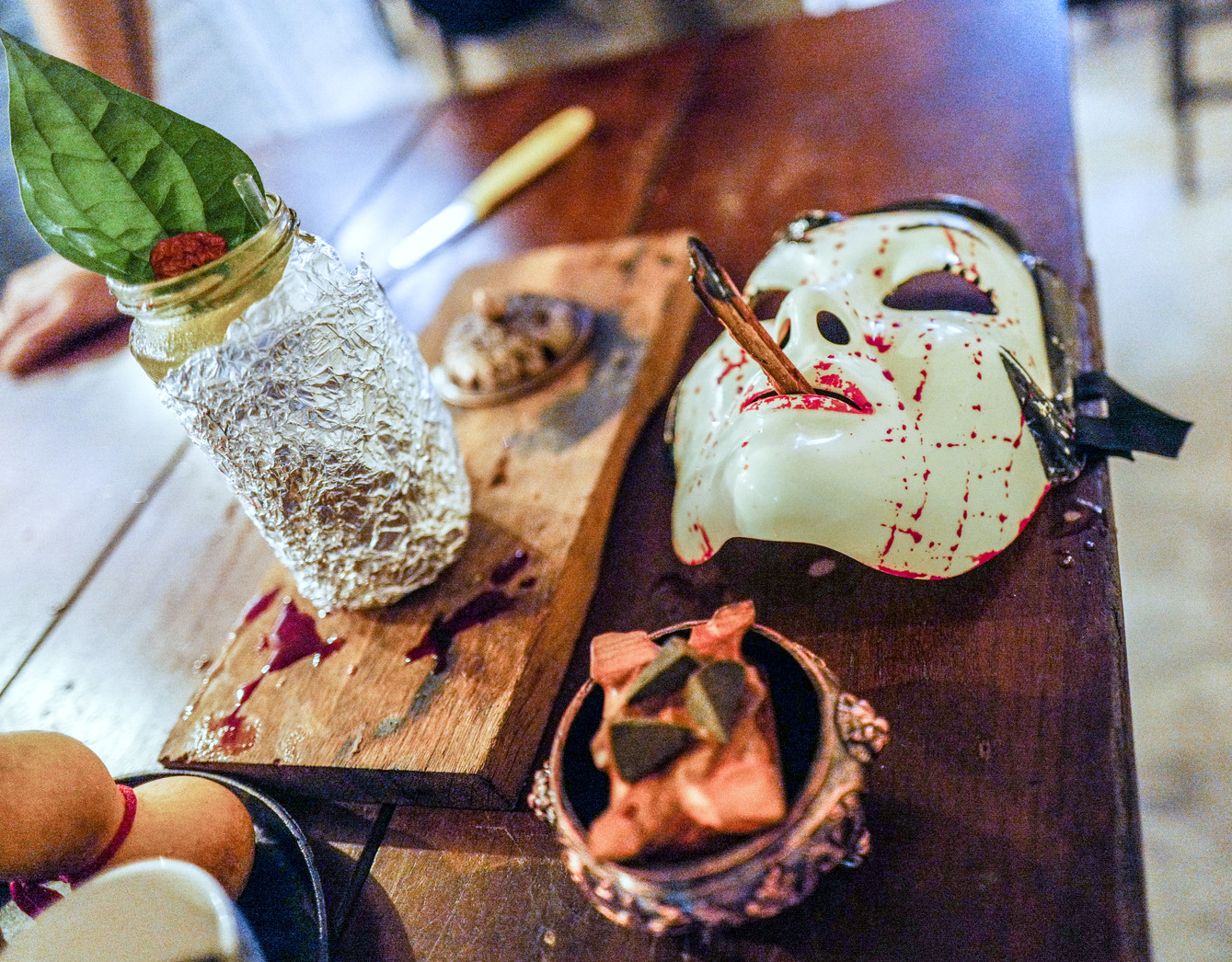 There's certainly a sense of drama and theatrics in concoctions like I Know What U Did Last Summer, complete with elaborate frills like a cinammon stick-smoking mask and a popping balloon, encircling a rum-based, ginger-laced complex cocktail topped with a betel leaf.