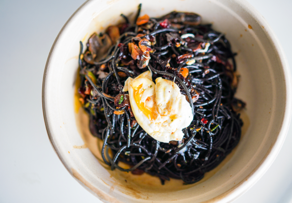 We tried ordering its highlights in the morning, but were informed later in the afternoon that most of them had run out, so we were left with two remaining possibilities - thankfully, the mushroom medley is a winner, triumphantly topped with firm, meaty mushrooms in an aromatically earthy, herbaceous pesto-and-pine-nuts ensemble on thick sourdough bread with a bite (RM26), while the squid ink pasta aglio olio is potent with spicy-garlicky flavours, prepared plain and pure with a poached egg (RM22).