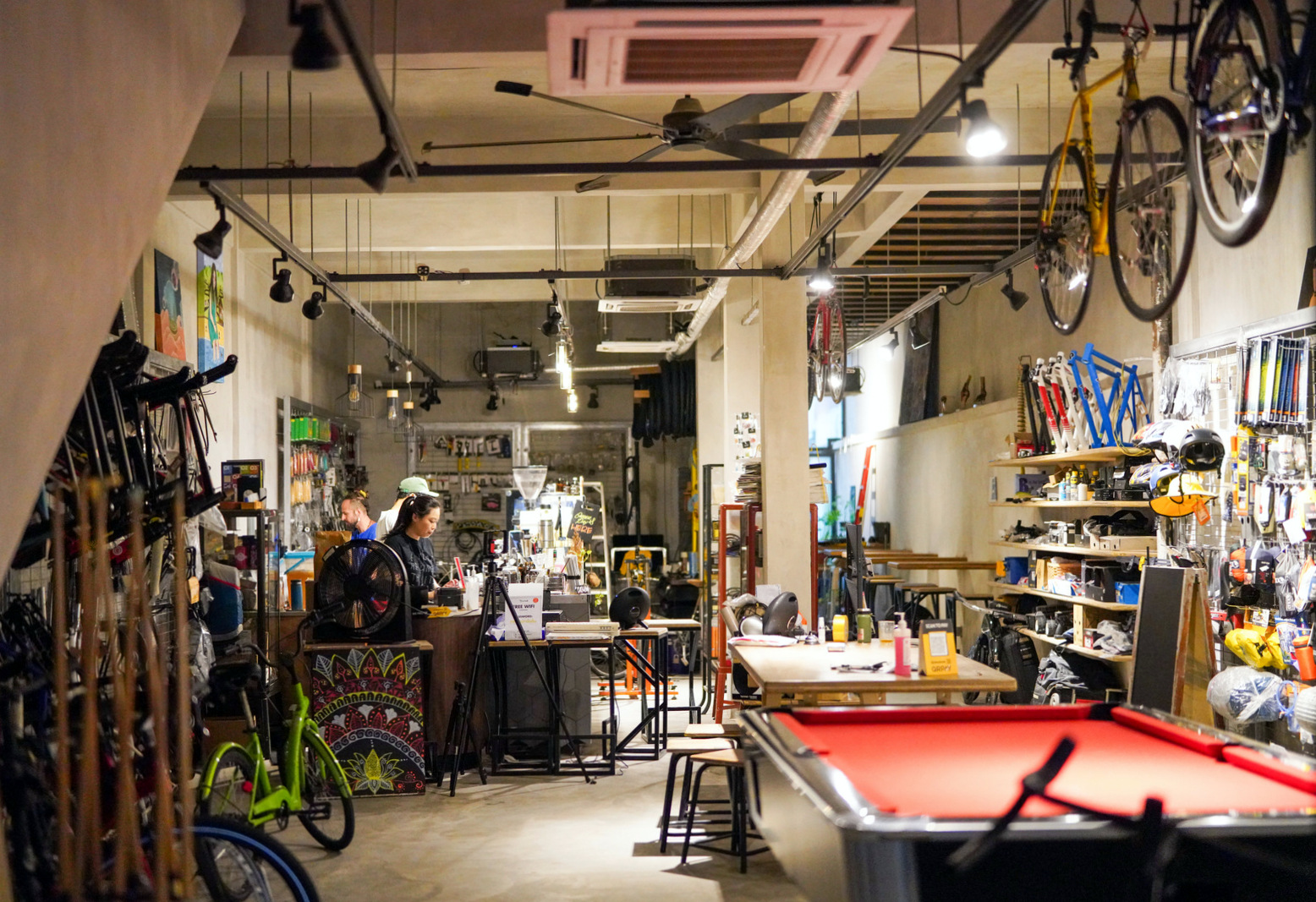 Flat whites, not flat tyres, keep the wheels spinning at The Basikal biking shop's in-house caffeine bar: Sip on a creamy cappuccino, brewed with beans by KL's small-batch Suka Benih roasters, or a toasty-roasty pour-over, with helmets, hand pumps and handle grips as Dropbar's backdrop.