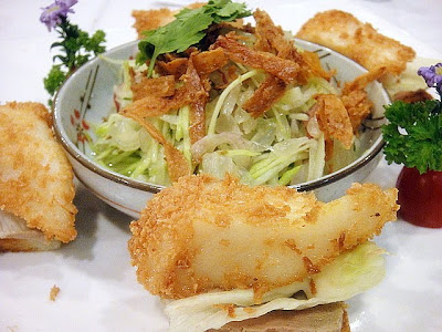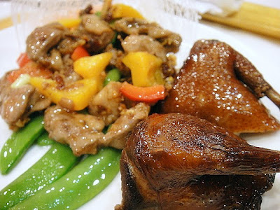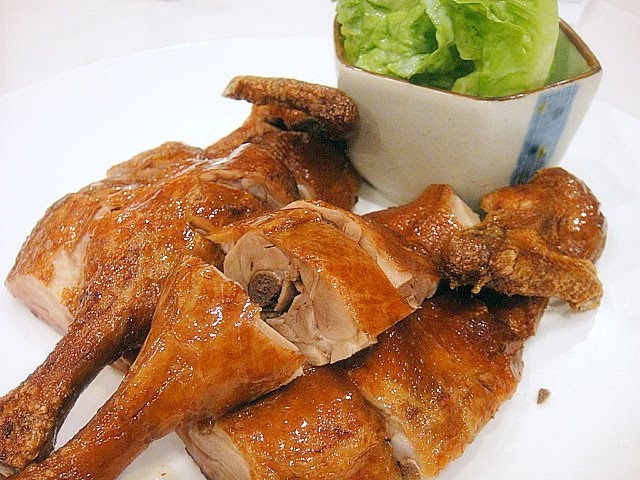BBQ baby duck with Caesar salad. The succulent, savory meat and the creamy salad turned out to be a tasty match of East and West.