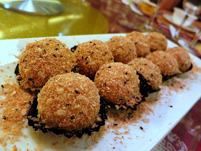 ... as well as wonton skin-wrapped salmon flakes & cuttlefish crackers.