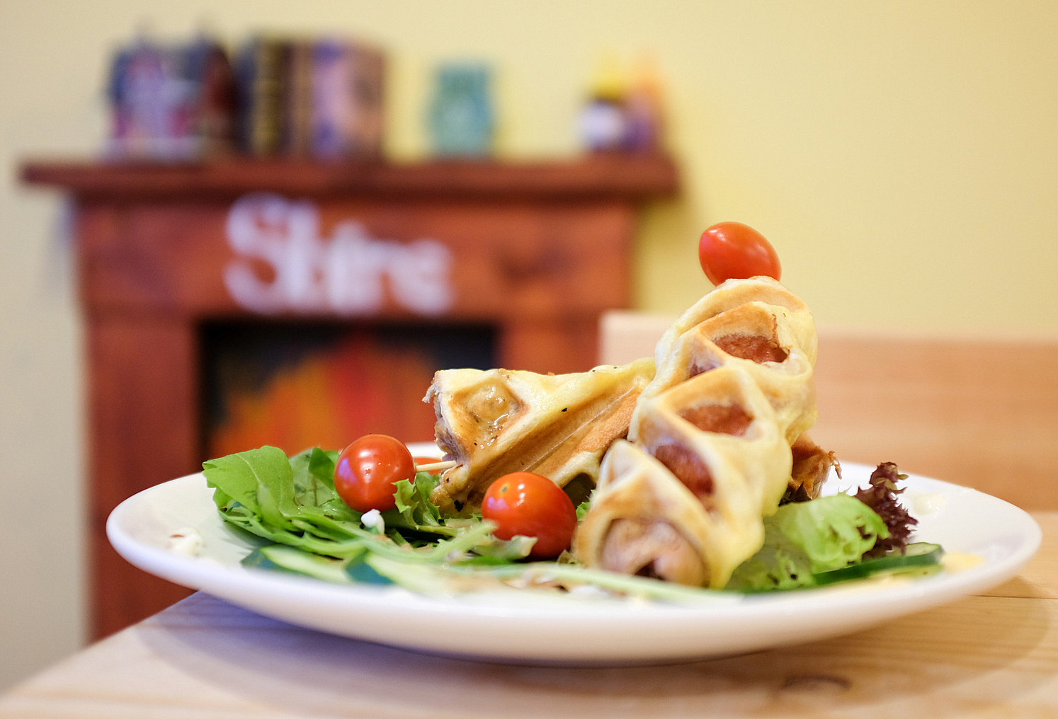 This LOTR-themed cafe counts a dozen waffles as its most precious offerings; the one to rule them all is the Fallen Tower (RM18), with bread sticks cooked in a waffle iron, wrapped around chicken sausages & cheese, served with scrambled eggs & vegetables - all the ingredients for a second breakfast, paired with a Mazagran (RM9), a mix of espresso over ice with lemon.