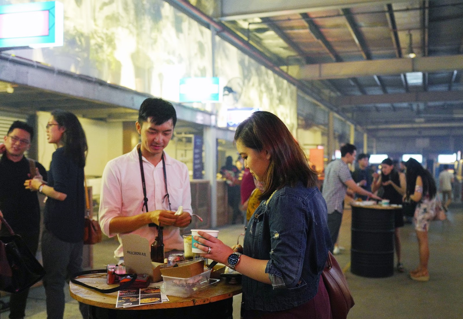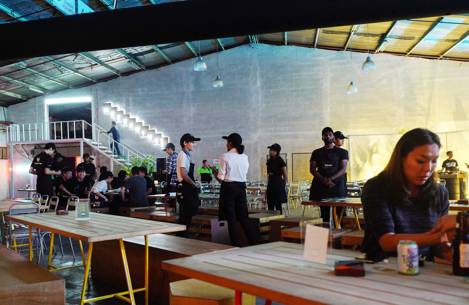 Hundreds of guests thronged this industrial location for a sneak peek ahead of Tiffin Food Court's official opening next week. It's a hip, grungy space that's perfect for weekend partying - more than 30 vendors will be there, offering more than 100 dishes that represent cuisines both local and international. In our next post tomorrow, we'll dive into the deliciousness that awaits you here!