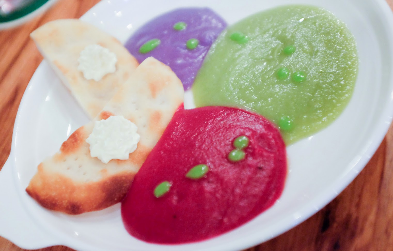 Tiramisu's team illustrates its try-something-different spirit of adventure with its eggs - patrons can have 'em poached, scrambled, as a sunny-side-up or an omelette, distinctively partnered with house-made, baby-food-soft mash flavoured with carrot & ginger, purple cabbage, red beets or broccoli, coupled with bread & cream cheese (RM18 each).
