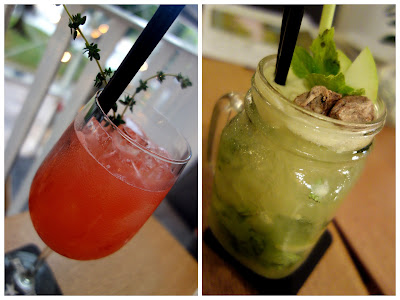 Fruity herbal concoctions: Eden Melon (gin, galliano, vanilla syrup, watermelon juice, thyme) & Assam Boi Mojito (with added apples).