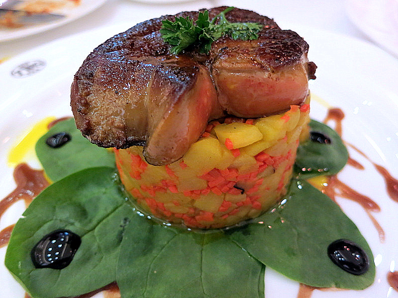 Sure, a hefty chunk of pan-seared foie gras on a cushion of caramelized apples and carrots, drizzled with a chocolate tea-infused vinaigrette, is a nice bargain for RM43.50+ ...
