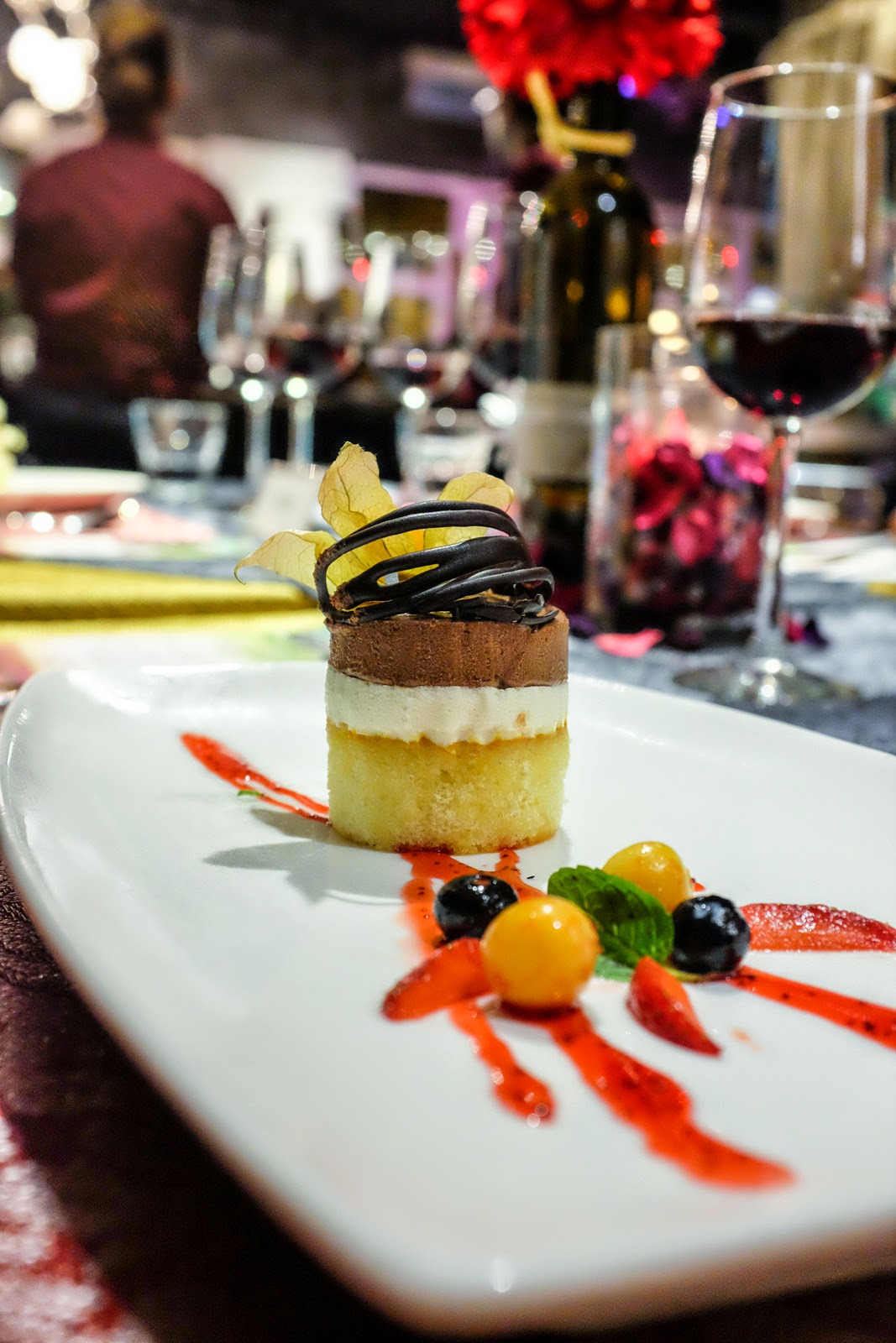 Passion fruit chocolate mousse with three-berry salsa, rounded out with Dona Village 2013 (RM251), a special wine with a philanthropic philosophy - a financial donation is channelled to a charity by Ulithorne for every bottle bought. The Dona GSM is typically meant for lighter meats, but it goes well with bitter dark chocolate desserts too.