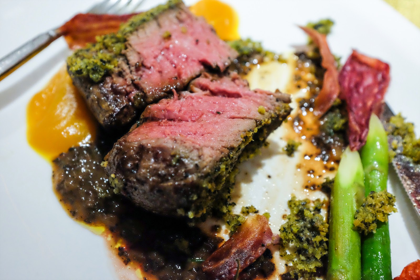 For heartier appetites: Herb-crusted beef, expertly executed, with butternut squash mousseline, pencil asparagus & morel jus. These mains were vibrantly coupled with Paternus Cabernet Shiraz 2011 & Frux Frugis Shiraz (RM460), from single-vineyard Shiraz planted by Kentish's father-in-law in the 1960s,