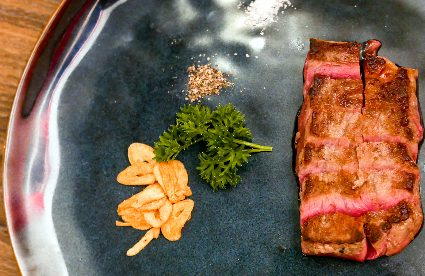 UoVo's menu comprises three primary pillars: The first is teppanyaki, relying on cuts of protein that supply full-bodied succulence, from Japanese-bred Wagyu beef to foie gras & free-range chicken. Uovo is currently in a soft-launch stage; the selection & prices were still being tweaked when we popped in, but customers can order individual dishes or request a multi-course teppan dinner that includes soup & salad starters (UoVo is especially proud of its plum tomato broth) & garlic fried rice.