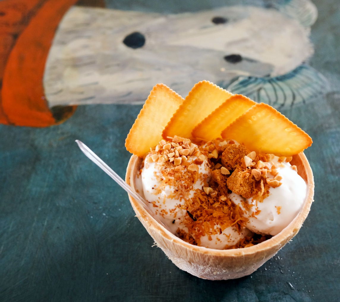 Feel-good nutrition: A croissant sandwich stuffed with smoked turkey ham, cranberry sauce, sunny-side-up & scrambled eggs, alongside a wholesome side of sliced oranges (RM17), refreshing coconut ice cream with nuts & crackers, plus a tangy house-made passionfruit-mango lemonade mixed with chia seeds & sparkling water (RM10.50), setting up a pretty satisfactory lunch.