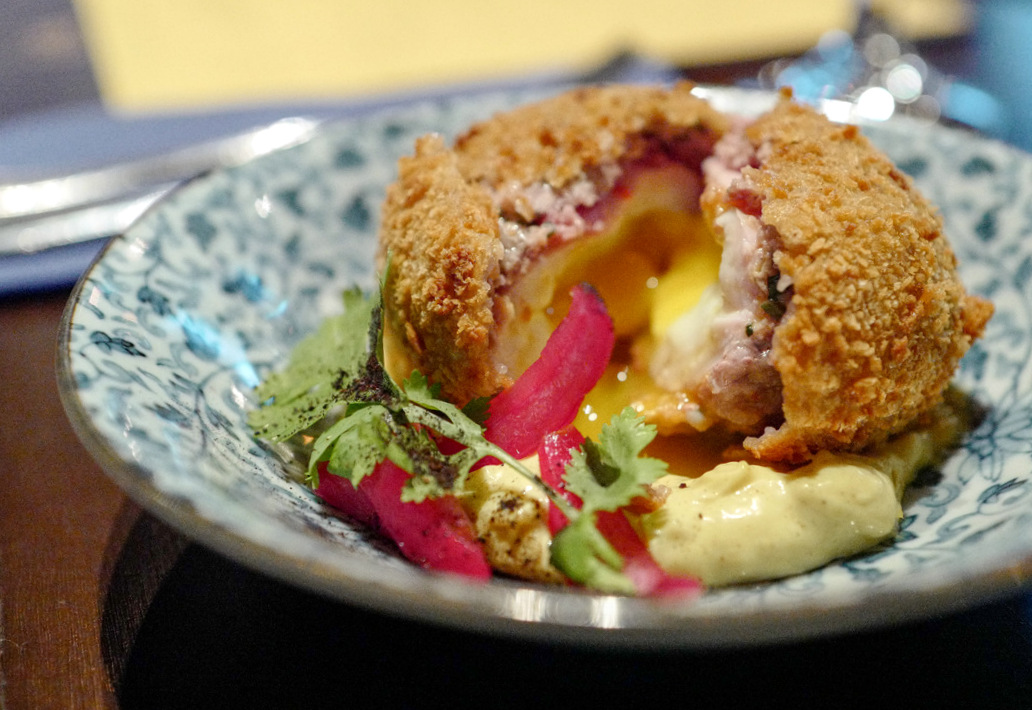 We opted for the light portions - the toad in the hole is presented in the manner of a hot dog, with the Yorkshire pudding, chicken banger, crispy onions, pureed peas & gravy all combining for mouthfuls of sheer deliciousness (RM18). W1's Scotch Egg is also a winner, with the runny-yolked egg encased in a warm beef crust, thoughtfully complemented by pickled red onions & curried aioli (RM16). The selection is extensive enough to cater to every preference - for a pasta fix, the beetroot spaghetti with feta cheese mousse & dried mushrooms is expertly executed, yielding confident flavours (RM15); for protein pleasure, the lamb nuggets with pickled kyuri & cilantro chilli yogurt makes for a rewardingly textured snack (RM18). But our favourite order proved to be W1's interpretation of spud comfort food - creamy Hasselback potatoes with sriracha-spiced cheese & savoury anchovy crumbs (RM10).