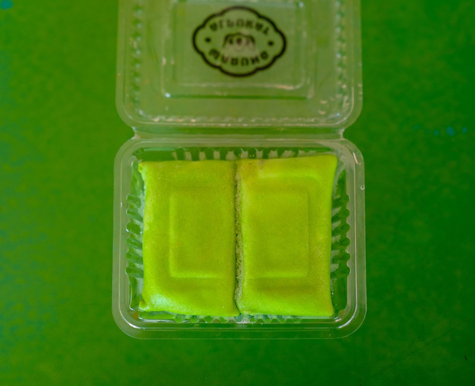 Alpukat admirers might be attracted to this stall that serves a variety of the Indonesian avocado shake - order the Alpukat Dinosaur with boba for a behemoth of a beverage, with Milo and ice cream on top and tapioca pearls at the bottom (RM13.50). Pair with a whipped cream chilled crepe pancake, pandan-hued on the outside, with some avocado sorbet inside (RM5.50 for two pieces).