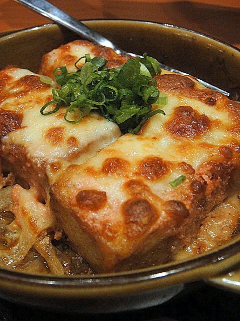 Okonomiyaki with a difference, stuffed with mochi for a sticky surprise. A well-executed version of this oft-abused pancake; thick and aromatic without being sickeningly greasy.